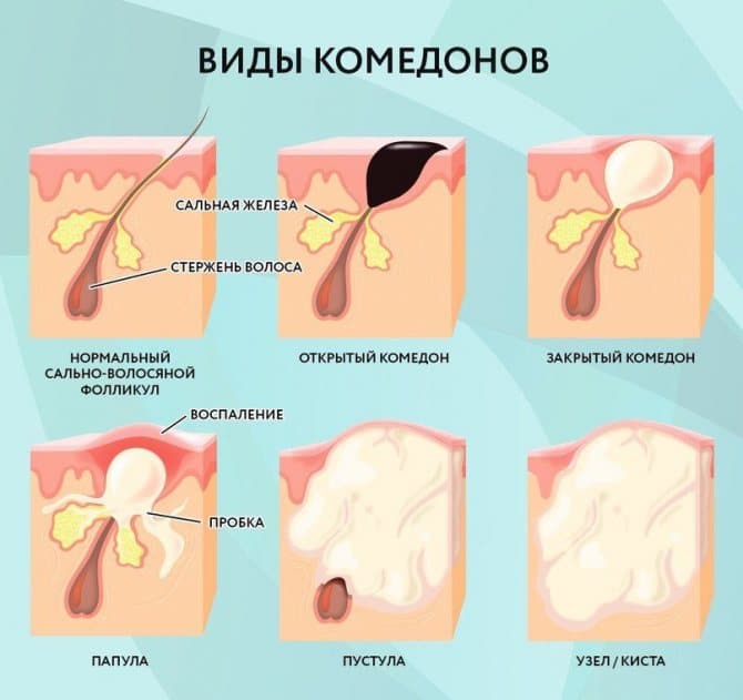 Главная причина возникновения комедонов — излишки кожного сала (себума) и нарушение процесса кератинизации, то есть обновления и отшелушивания клеток кожи. Клетки эпидермиса, в свою очередь, не отшелушиваются должным образом, скапливаясь и блокируя поры.